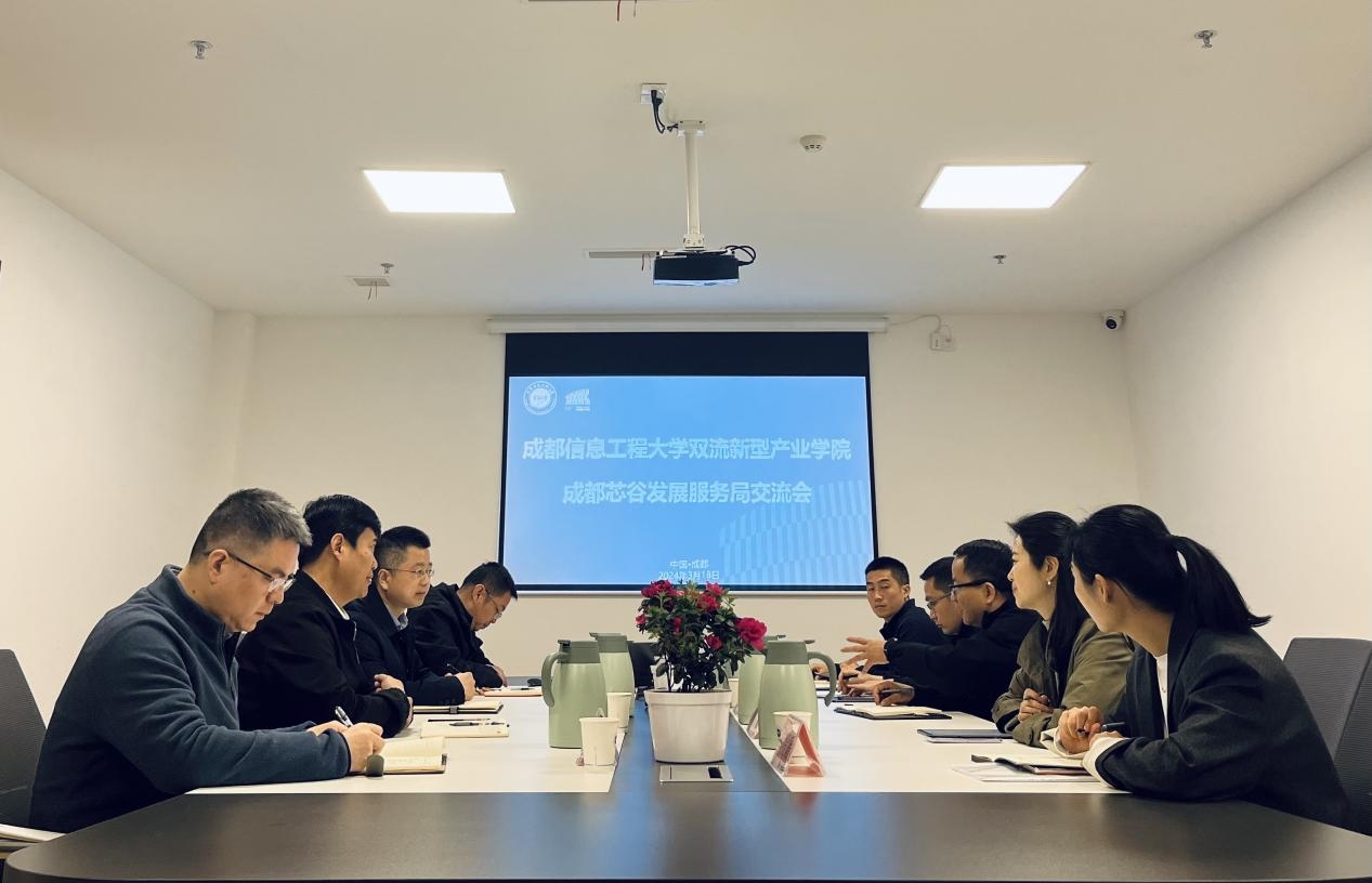 【本网讯】3月18日,双流区区委常委、宣传部部长、成都芯谷发展服务局党组书记许敬,成都芯谷发展服务局局长谢爽、副局长赵浦一行到我校bevictor伟德调研座谈。学校科技处副处长柳锦宝,新型产业学院管委会主任陈智勇,大学科技园公司总经理刘晓阳、副总经理王强参加座谈。