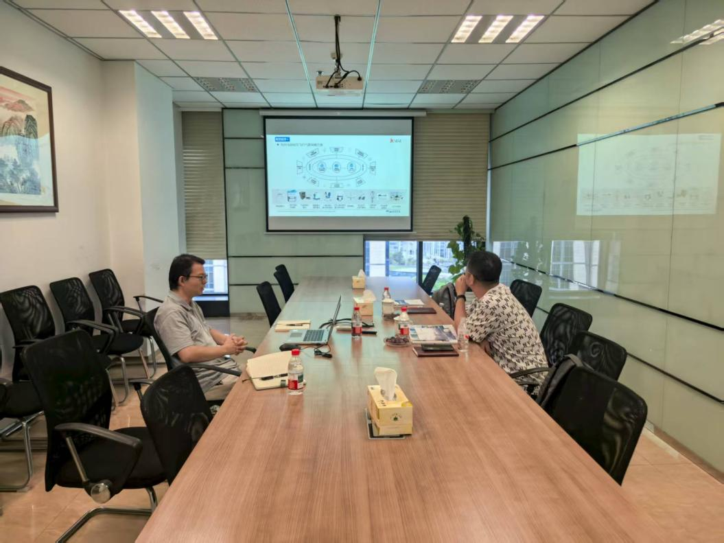 交流中,周涛详细介绍了杭州浅海科技在气象技术研发领域的成果,重点聚焦低空经济气象产品的创新突破。他通过数据可视化演示,展示了公司自主研发的低空风切变预警系统、海洋气象监测设备等核心产品。